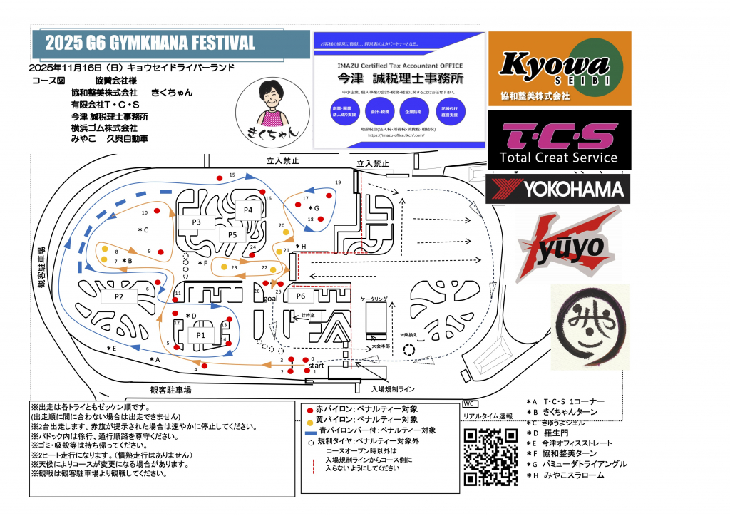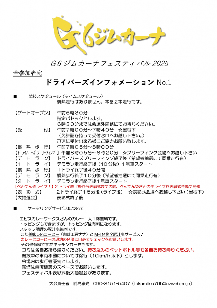 G6ジムカーナフェスティバル インフォメーション1 & ドライバーズブリーフィング資料 & パドック図