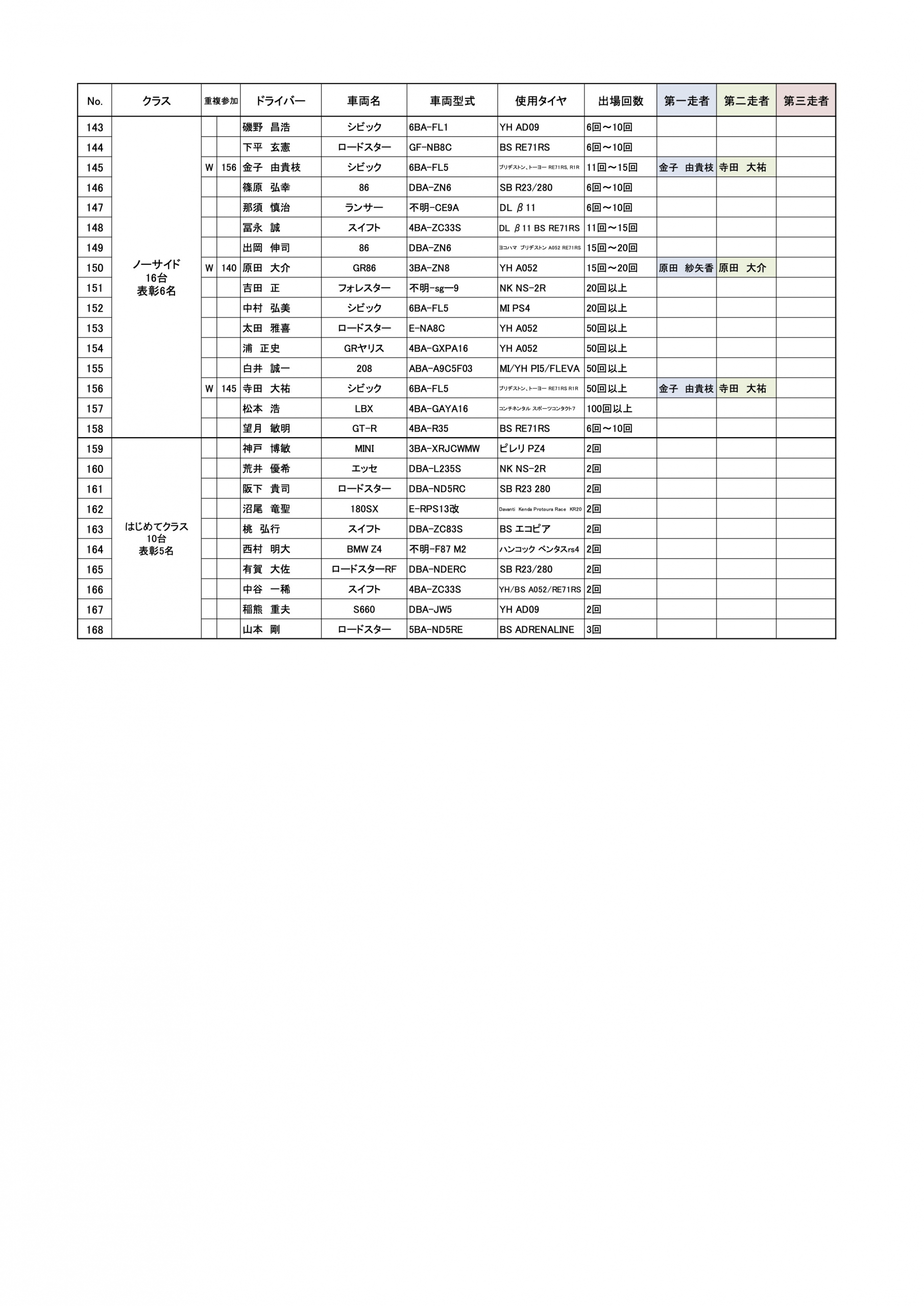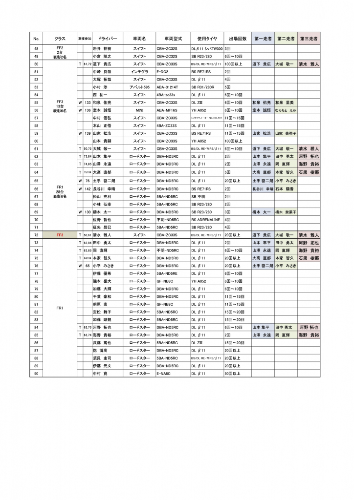 ATクラスとFF3クラスの出走順にクラス跨ぎが発生していますので、当該者は注意してくださいね!