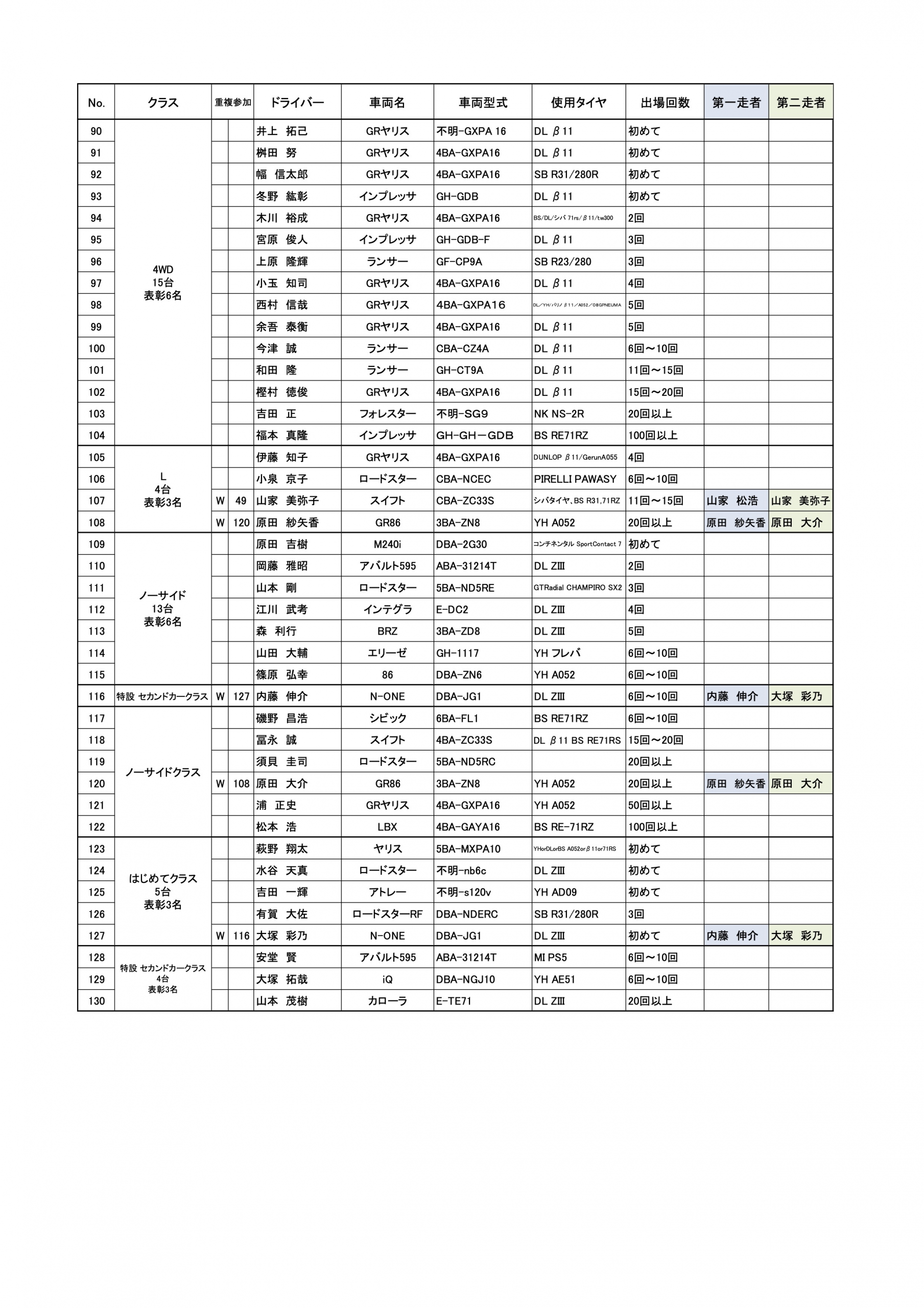 この一覧表は、エントリーフォームでの受付が確認されたかたの一覧になります。