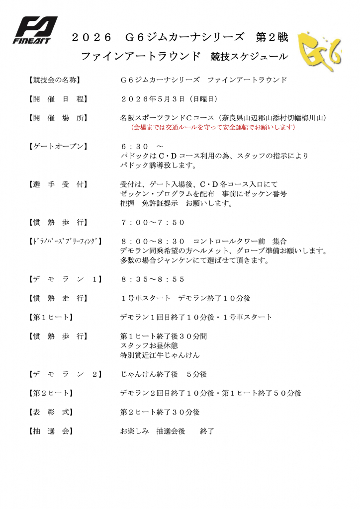 フェスティバルの特別規則書を公開します。 参加資格は今年度のG6ジムカーナに1戦 ...
